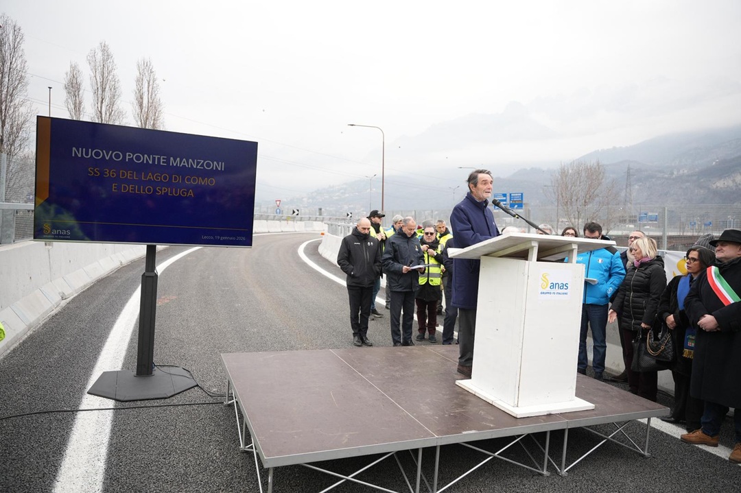 “L’inaugurazione è il frutto di un lavoro sinergico importante, svolto con grande concretezza e con la capacità di ottenere risultati tangibili a beneficio del territorio. Il nuovo ponte Manzoni rappresenta un tassello strategico per il miglioramento delle connessioni nel quadro delle infrastrutture lecchesi che stiamo implementando in questi anni. Lecco è centrale e destinataria di notevoli investimenti, anche rispetto agli sforzi per efficientare i collegamenti tra Milano e la Valtellina“. Lo ha detto il presidente della Regione Lombardia, Attilio Fontana, partecipando al taglio del nastro del nuovo ponte Manzoni lungo la Strada statale 36, aperto al traffico in anticipo rispetto al cronoprogramma.