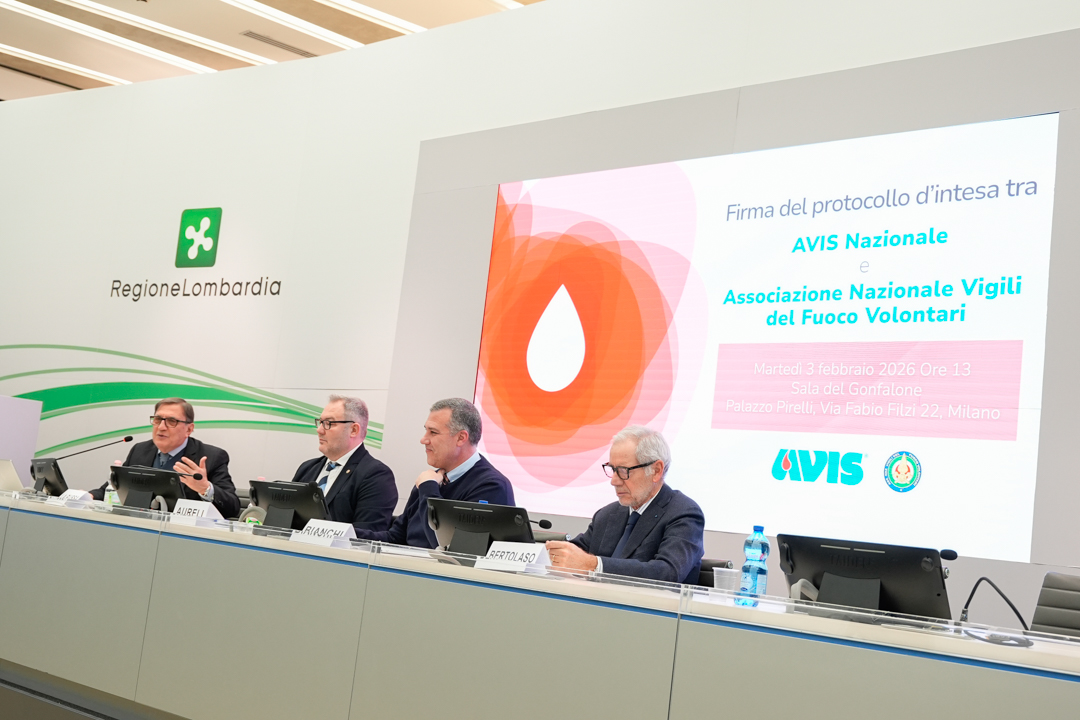 Sottoscritto martedì 3 febbraio a Palazzo Pirelli il protocollo d’intesa tra Avis Nazionale e Associazione Nazionale dei Vigili del Fuoco Volontari (ANVVFV) finalizzato a promuovere la cultura della donazione di sangue e plasma e a rafforzare l’impegno solidale sul territorio. Alla firma hanno partecipato i presidenti dei due enti, Oscar Bianchi per AVIS Nazionale e Sergio Aureli per l’ANVVFV, alla presenza dell’assessore regionale al Welfare, Guido Bertolaso, e dell’assessore regionale alla Sicurezza e Protezione civile, Romano La Russa.