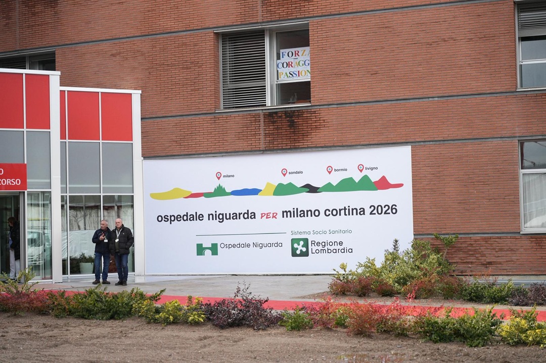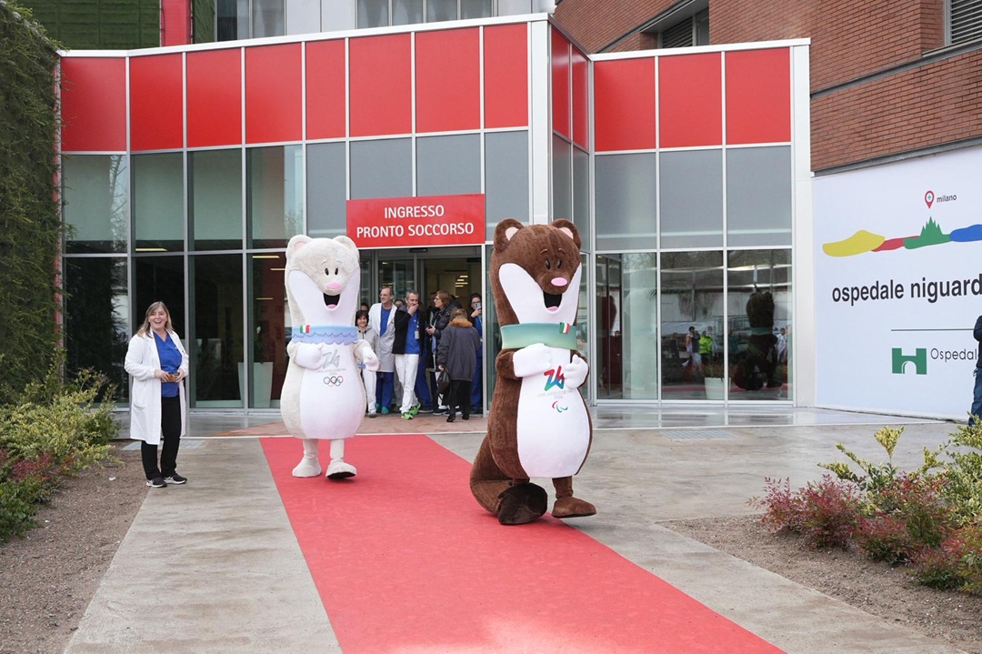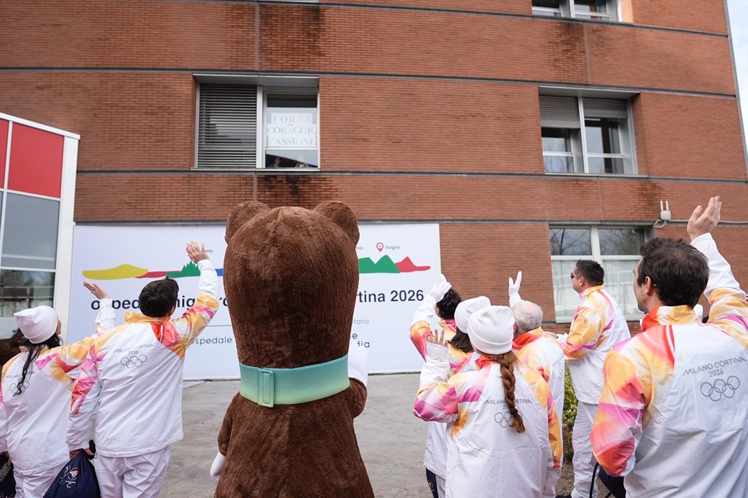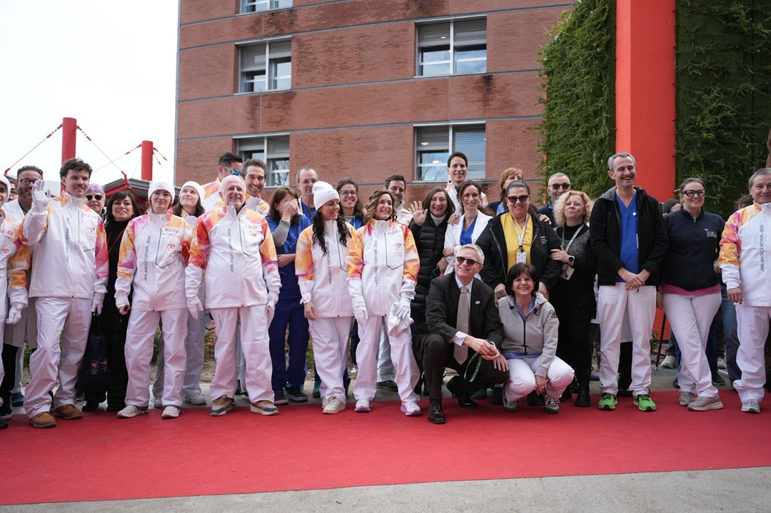 I pazienti hanno partecipato simbolicamente esponendo cartelloni realizzati appositamente per l’occasione dalle finestre del reparto. Presenti medici, infermieri e operatori sanitari e il Direttore Generale dell’ospedale e medical care manager Lombardia per Milano Cortina 2026, Alberto Zoli.