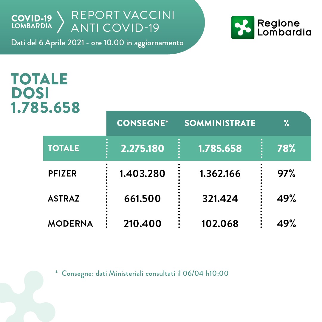 In Lombardia, a giovedì 25 marzo, sono state somministrate 1.409.677 dosi.